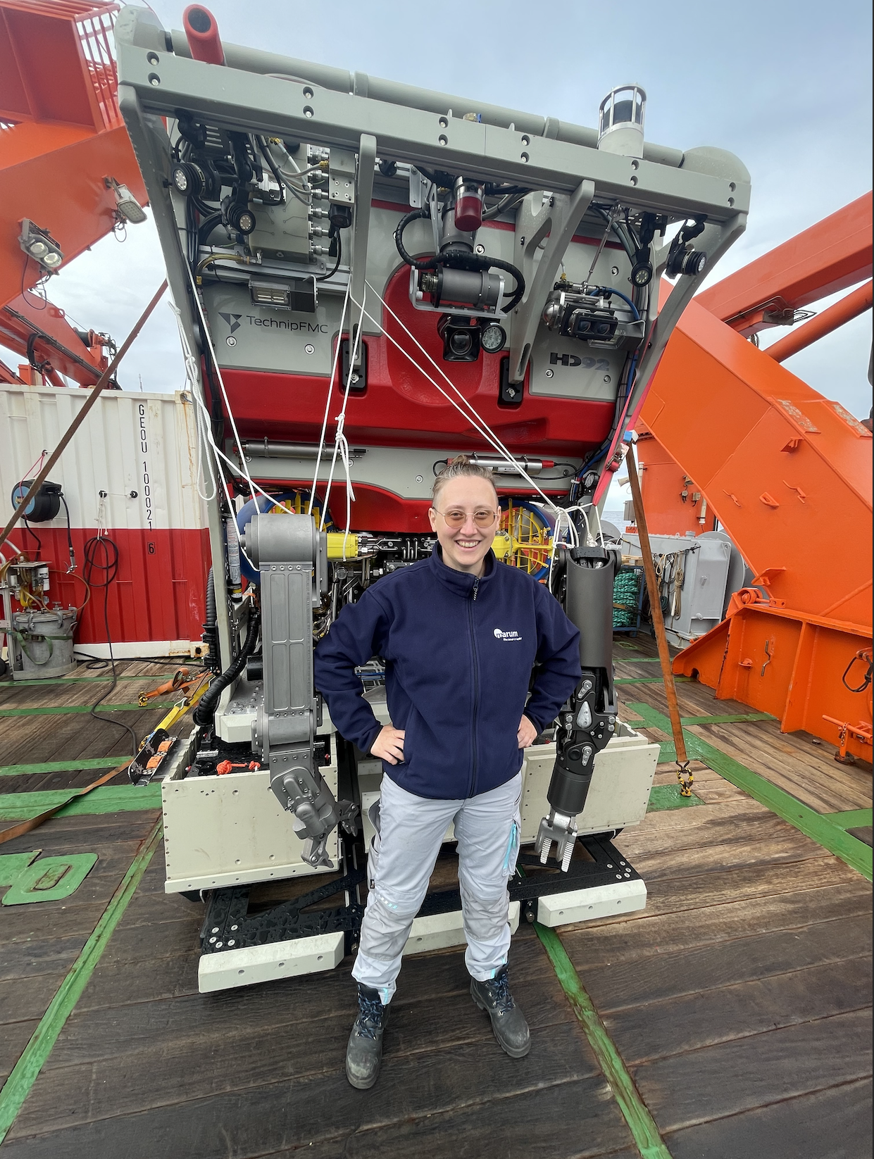 Nach einem Studium quer durch Physik, Elektro- und Informationswissenschaften arbeitet Sophia am Marum in der technischen Entwicklung der Meeresrobotik und fährt als Tauchroboterpilotin zur See. Dort bereitet sie in Zusammenarbeit mit den Forschenden an Bord, der Schiffscrew und dem Meeresrobotikteam wissenschaftliche Tauchgänge zum Meeresboden vor und bedient die Roboter im Einsatz. Nach der Expedition analysiert Sophia die gewonnenen Daten und Erfahrungen, um die Technik weiter zu entwickeln.