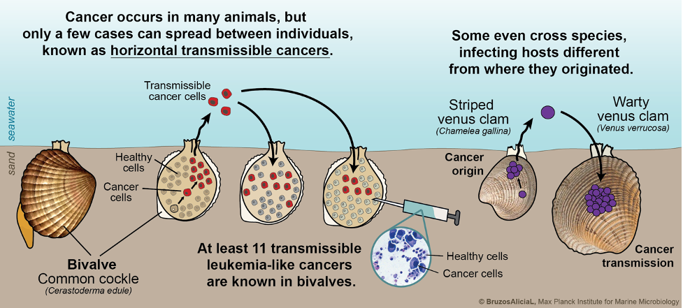 The Marine Transmissible Cancers Research Group led by Alicia L. Bruzos investigates how cancer cells can become contagious and spread among marine bivalves. We combine fieldwork, molecular techniques, multi-omics, and experimental approaches to understand the ecological and evolutionary dynamics of these unusual cancers, which challenge our definitions of cancer and disease transmission.
